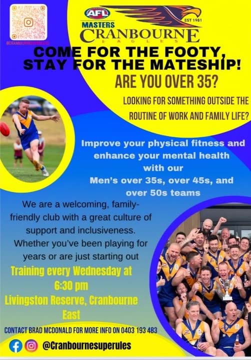 AFL Masters Cranbourne Eagles Join our family in 2025